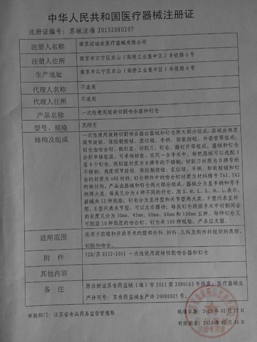 醫(yī)療器械注冊證