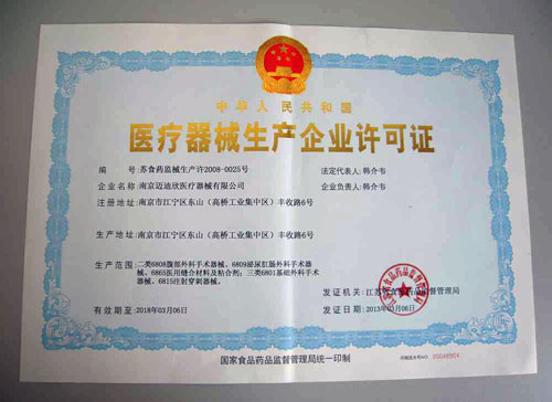 醫(yī)療器械生產(chǎn)許可證