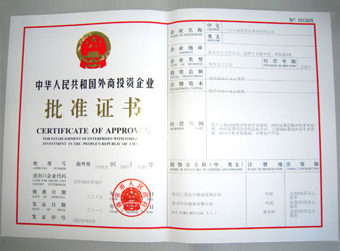 外商投資企業(yè)批準(zhǔn)證書